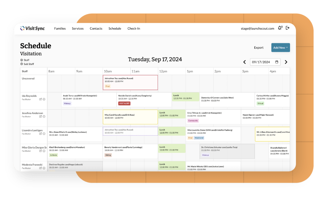 “Visit Sync is much more efficient than the disjointed systems we were using before. At the click of a button, we are managing participants, schedules, and a depth of cross-referenced contact information. This tool has moved the management of all that to the background, so my primary focus is on delivering great services to our families.”