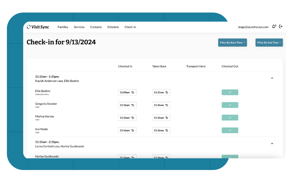 Free up your team’s time to focus on rebuilding family relationships. Let Visit Sync serve as your all-in-one participant database, scheduler, and facilitation platform so that you can spend less time on administrative tasks and more time making an impact.